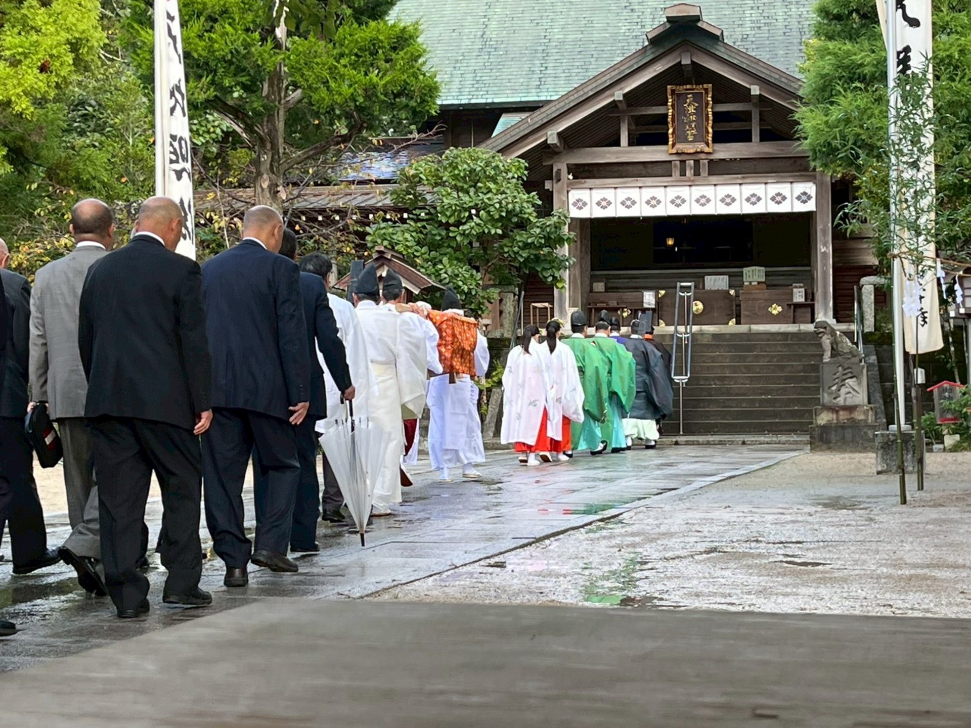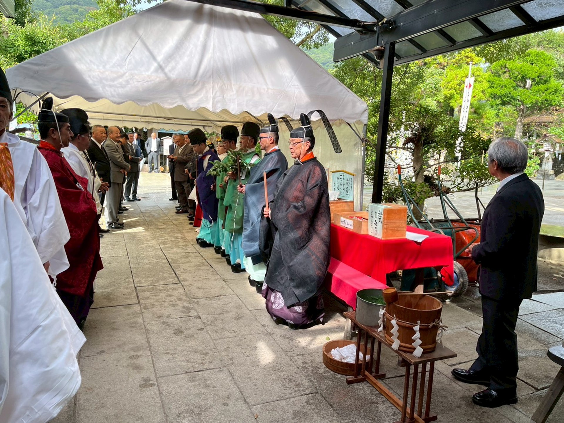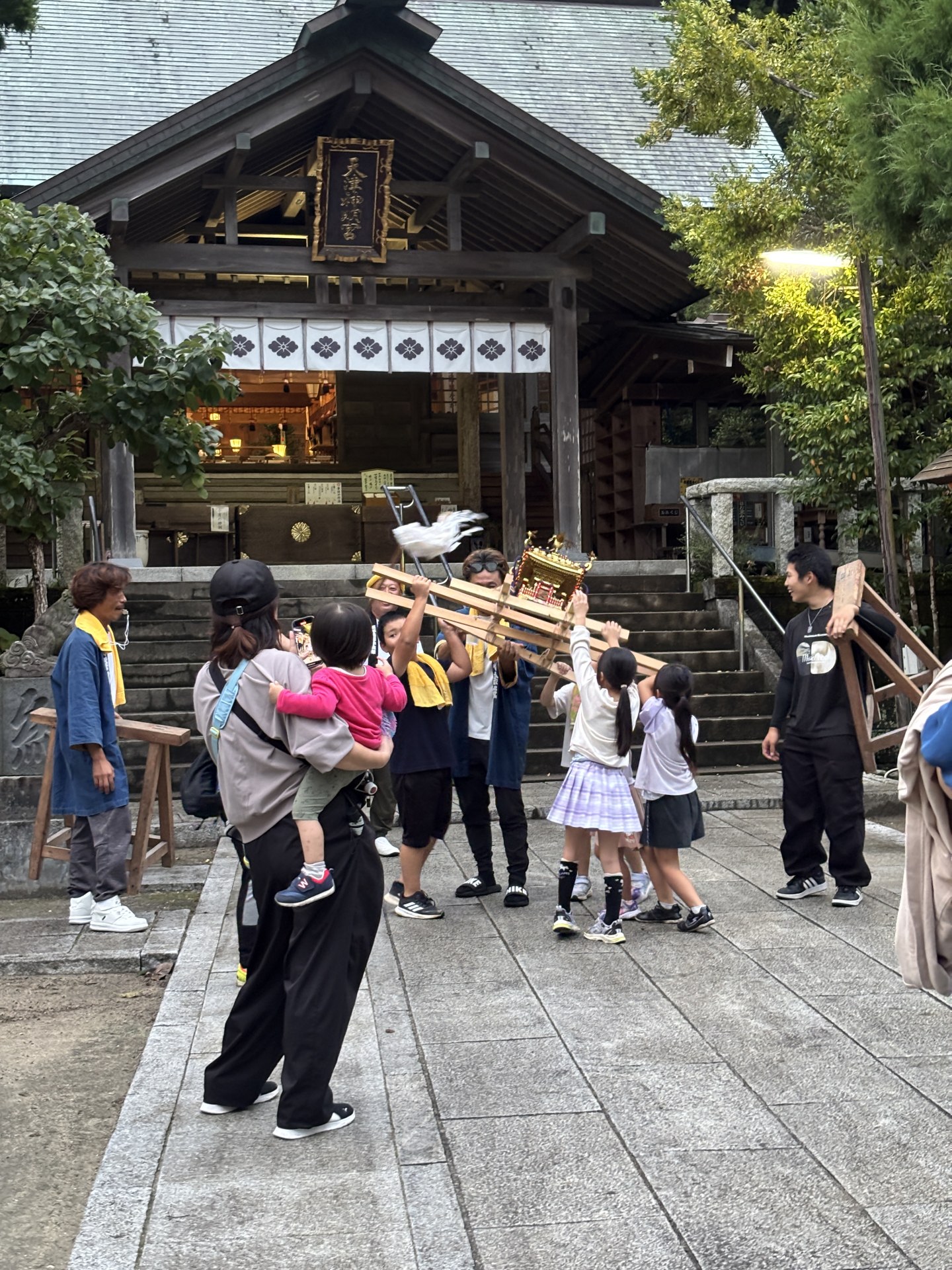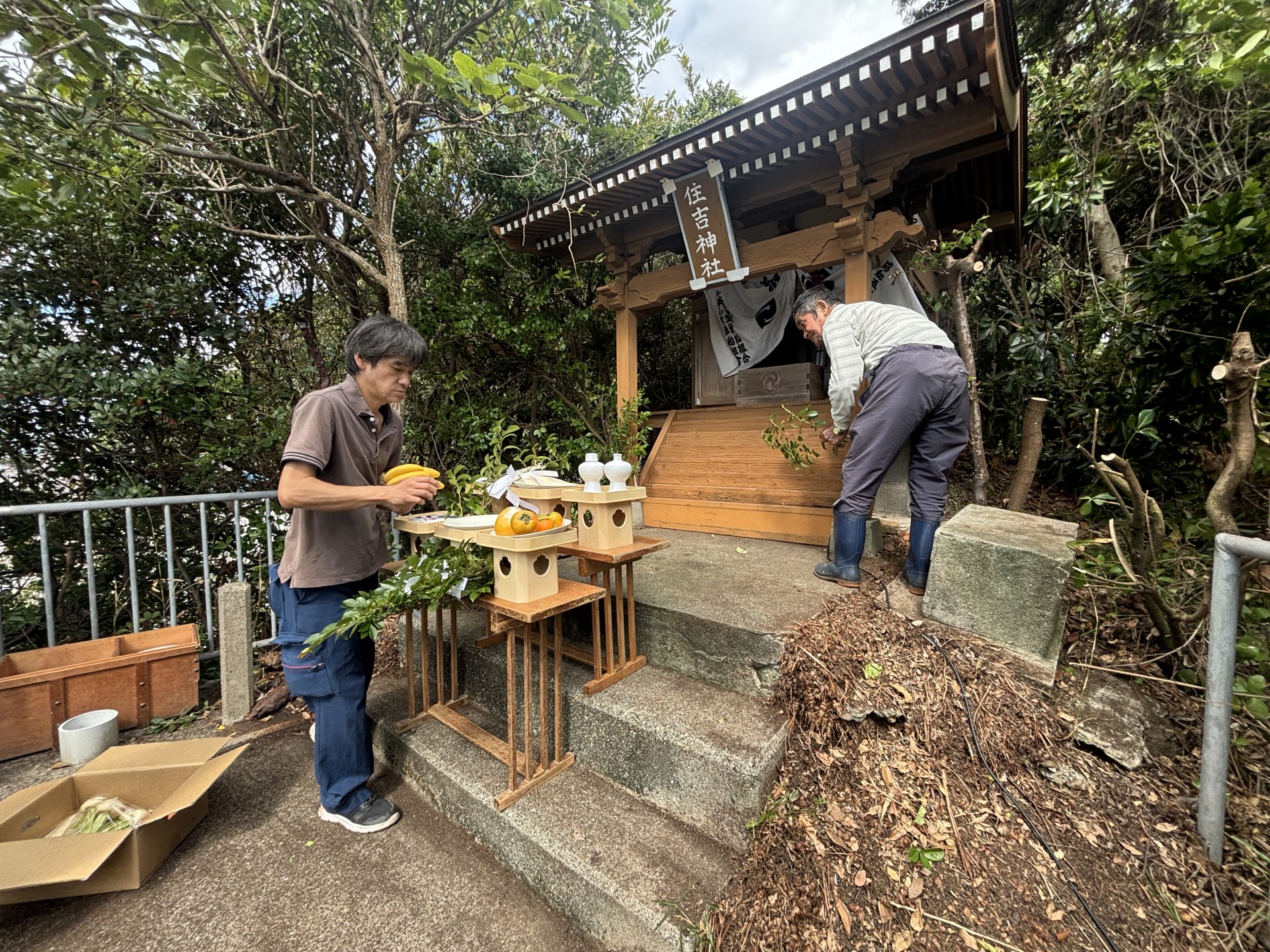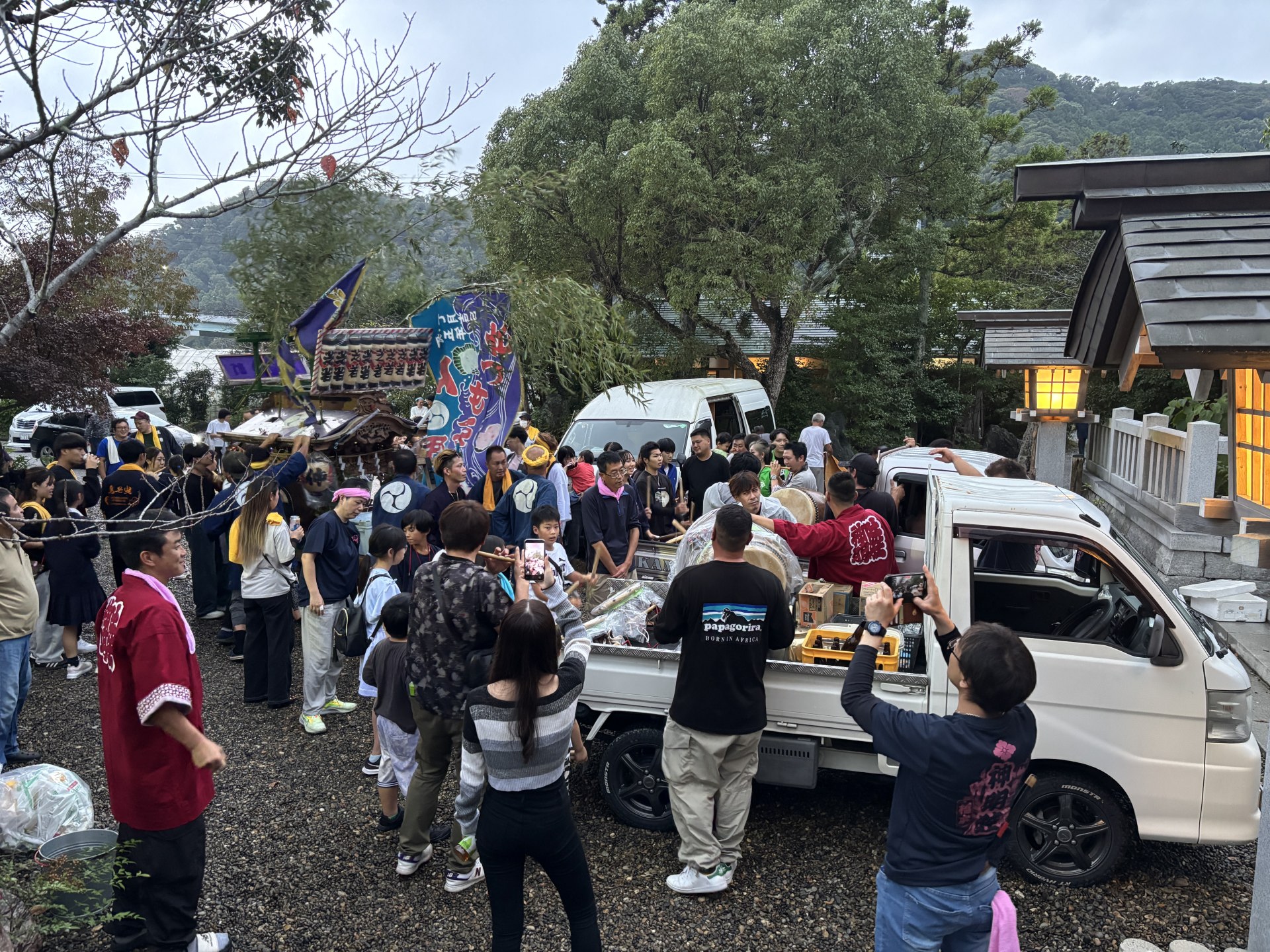 午前中、弟と共に、花房区に鎮座する瀧口神社の例祭式を奉仕に伺う。 曇り空ではあったが、逆に過ごしやすい陽気で、氏子総代・役員の方々の参列の下、厳かに祭典を斎行した。 御神輿のほか、大きな山車も出される瀧口神社の祭礼。 いまかいまかと待ちわびた子どもたちも時折社殿の中をのぞきこみ、なんだか温かい光景であった。 祭典後には、地域の人たちが団結して行われるお祭りが集落の一つの柱であること、政府も地域の祭礼の継続を限界集落を判断する一つの指標に置いていることなどをお話しした。