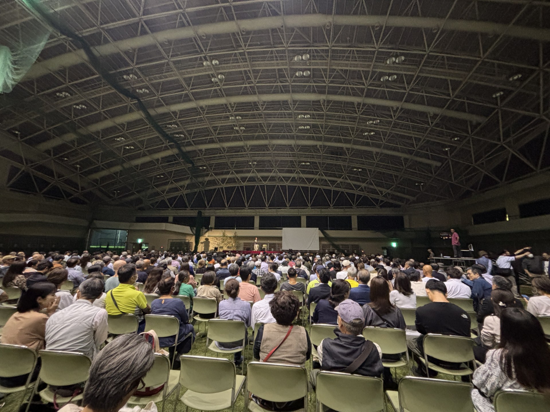 1,000人近くになるだろうか、大勢の人たちが集まった会場 iPhone 15 1.54 mm ISO1000 1/25 sec f/2.4