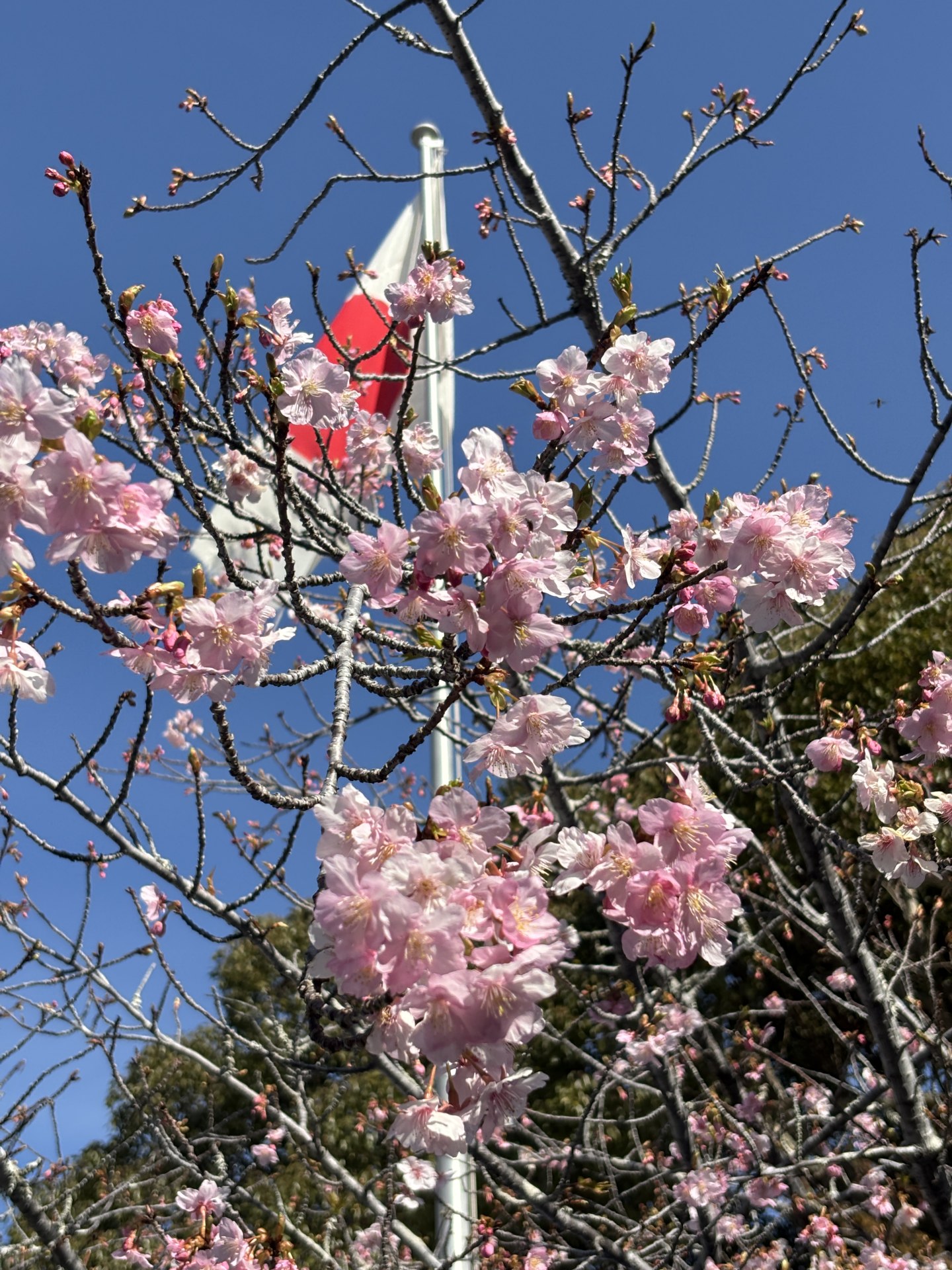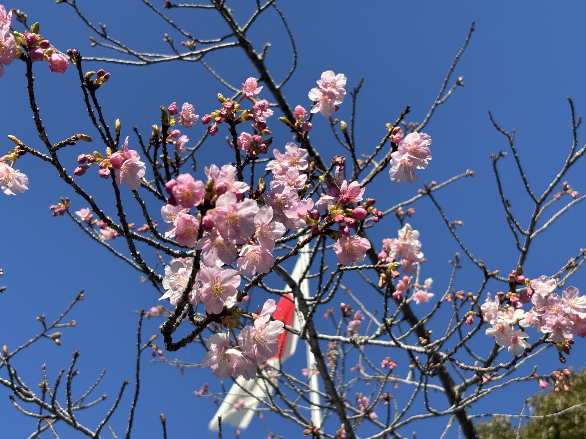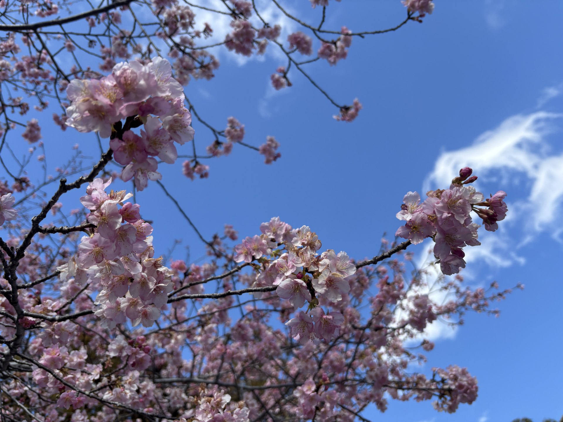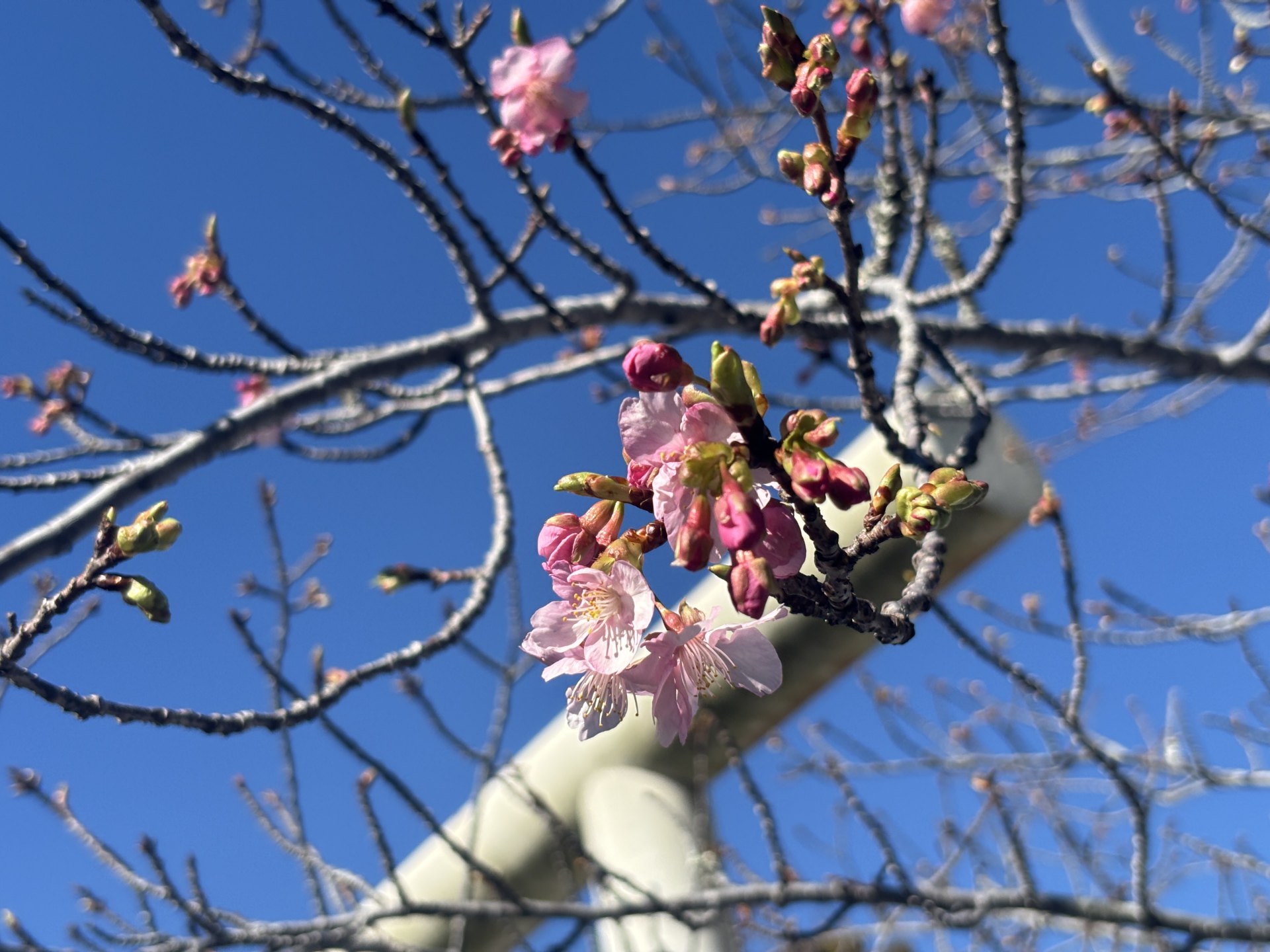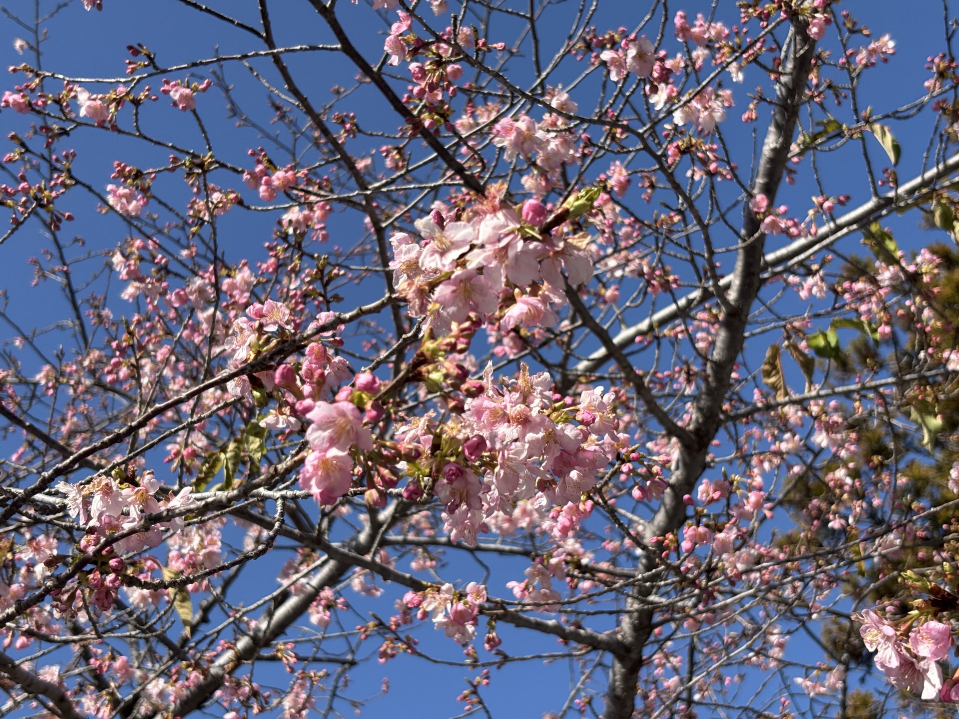 公衆トイレ前の河津桜は満開が近づいてきた。 iPhone 15 5.96 mm ISO32 1/2024 sec f/1.6